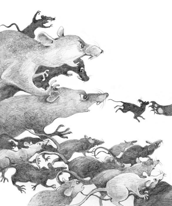 Они ворвались в кладовку. Мыши, метавшиеся в панике, бросились наружу. Но некоторые готовы были сражаться.
