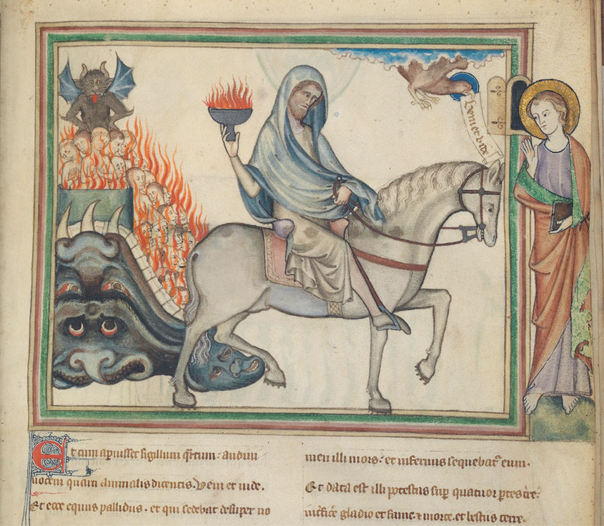 Открытие четвертой печати Апокалипсиса. Рукопись XIV в. Нью-Йорк, Метрополитен-музей