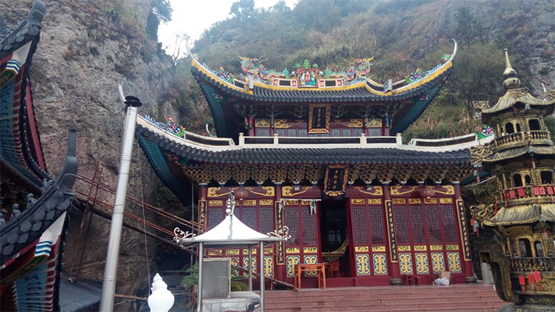 * * *И напоследок. Основной целью была поездка не в Вэнь-чжоу, и в Тай-чжоу. Где состоялась встреча с могущественным даосом из школы Шеньсяо-пай, проживающим близ храма Саньцин-гун (台州三清宫) в пригороде. Он был против фотографирования. Но… в момент запечатления этого фото он находится внутри храма: