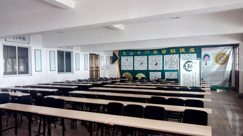 Имеет множество учеников. Ежемесячно проводит здесь семинары, от 200 человек за раз. Говорит, бывало собиралось 500 человек, и приходилось вести занятия под открытым небом. Но для меньших групп в храме Львиного пика есть такие вот учебные аудитории: