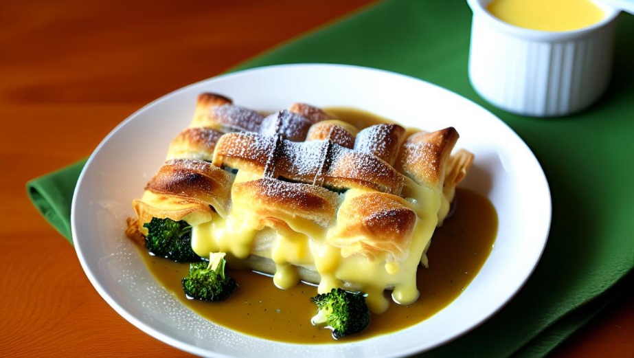 Рецепт: Штрудель из брокколи и лука-порея с соусом из сыра