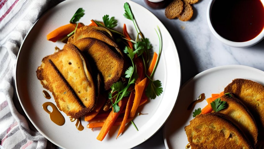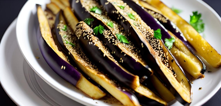 Вымойте баклажаны и нарежьте их полосками. Смешайте их с кунжутным маслом, семенами кунжута, солью и перцем и обжарьте во фритюре при 180 градусах в течение 20 минут.