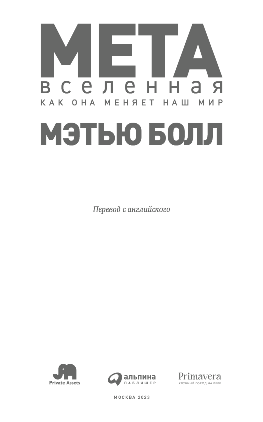 У вас в руках результат многолетних наблюдений одного из самых влиятельных визионеров и теоретиков метавселенных, бывшего топ-менеджера Amazon и венчурного капиталиста Мэтью Болла – международный бестселлер «Метавселенная: Как она меняет наш мир». Автор книги помещает в исторический контекст развитие технологий, приближающих нас к новому цифровому пространству, рассуждает, как будет меняться виртуальный мир, и делится своим ви́дением будущего метавселенной.
