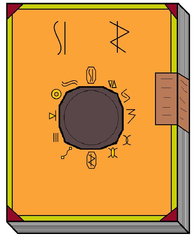 Книга была запечатана со стороны страниц, и книгу нельзя было открыть. На вид книге много лет. На ней были изображены не понятные символы. Никита попытался открыть её. Но и ему книга не поддалась.
