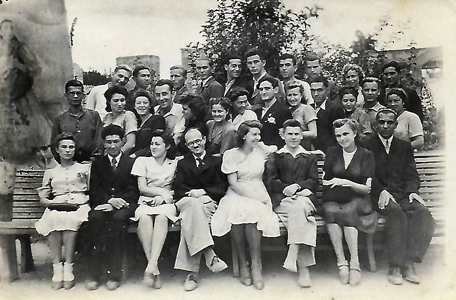 В первом ряду декан факультета Костенко (четвёртый слева) и его заместитель Карпинский (третий справа). Ташкент, лето 1945г.