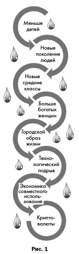 Старение населения становится нормальным явлением в Америке и Западной Европе. В то же время более молодые поколения вливаются в ряды среднего класса в большинстве развивающихся стран. Они олицетворяют совершенно другой тип потребителей, непохожий на потребителей прошлого. В частности, они более амбициозны в своих устремлениях. По мере расширения среднего класса все больше женщин становятся богатыми, все больше представителей обоих полов выбирают городской образ жизни и обеспечивают беспрецедентный рост городского населения по всему миру. В городах появляется критическая масса изобретателей и предпринимателей, полных решимости подорвать устои инновациями и технологиями.