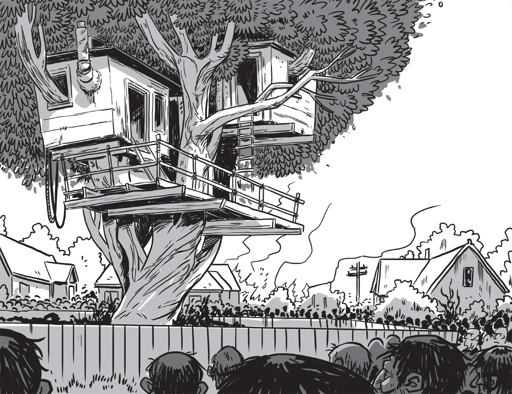The tree house used to belong to my scummy little foster brother. Y’know, before . . . But I’ve made some major additions since all the terror went down.