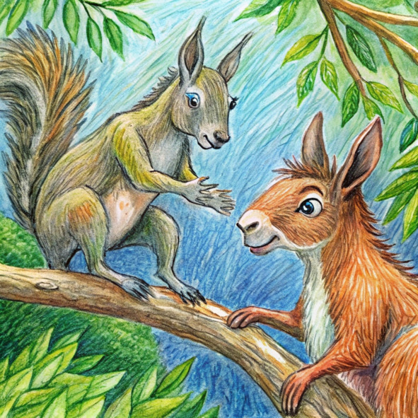 Усмехнулась белка, спрыгивая на нижнюю ветку.