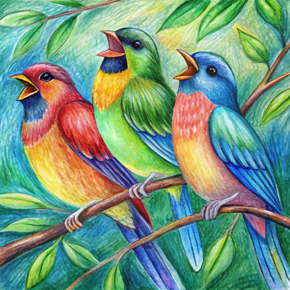 Когда он неторопливо шел по залитой солнцем поляне, его приветствовала симфония радостных мелодий. Стая разноцветных птиц сидела на ветвях, их песни сливались в хор чистой радости. Каждая птица пела с вибрирующей энергией, словно делясь секретом, известным только им.