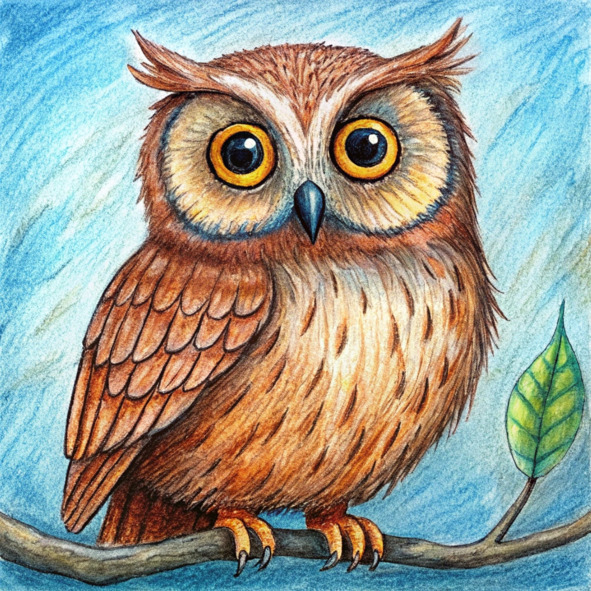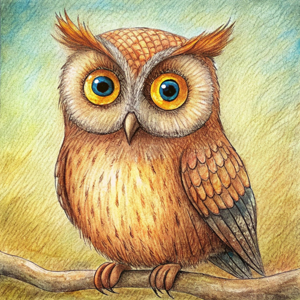 – Мудрая старая сова сидела на ветке, ее глаза сияли древней мудростью.