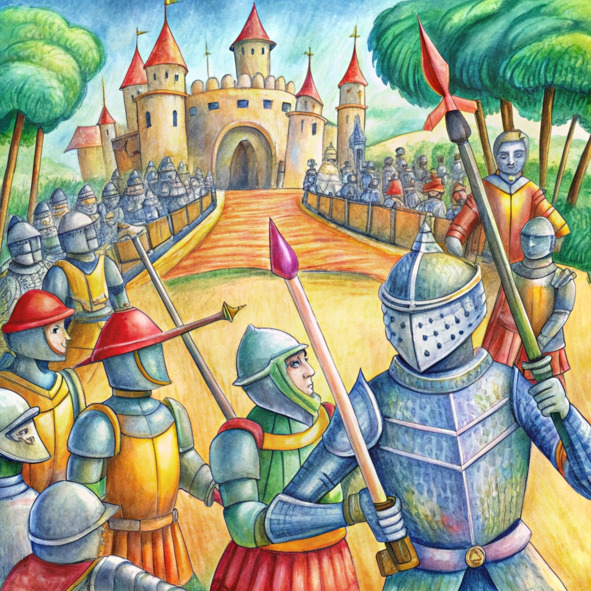 Внезапно к ним приблизился храбрый рыцарь в начищенных доспехах и сверкающем мече.