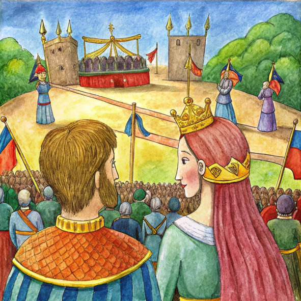 Она смотрела на него, ее глаза светились любопытством, как будто она видела что-то сквозь простую одежду и узнавала что-то особенное в его сердце. И пока они разговаривали, время таяло. Она делилась историями о тайных садах и приключениях в Королевской библиотеке, а он, в свою очередь, рассказывал ей о своей мечте стать рыцарем, об историях, которые он читал, о