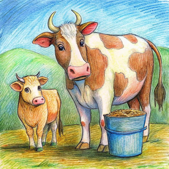 Он поплелся в доильный сарай, надеясь найти способ внести свой вклад, даже если он не понимал взрослых обязанностей на ферме. Его взгляд упал на Бесси, добрую коричневую корову, терпеливо стоявшую, пока фермер Джон чинил изгородь возле загона для овец.