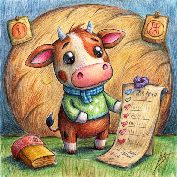 Солнце сонным оранжевым шаром выглядывало из-за холмов, когда теленок Джеймс неторопливо шел по двору фермы. Это был вторник, такой же, как и любой другой вторник на ферме «Солнечный луг», наполненный сладким ароматом сена и нежным мычанием коров.
