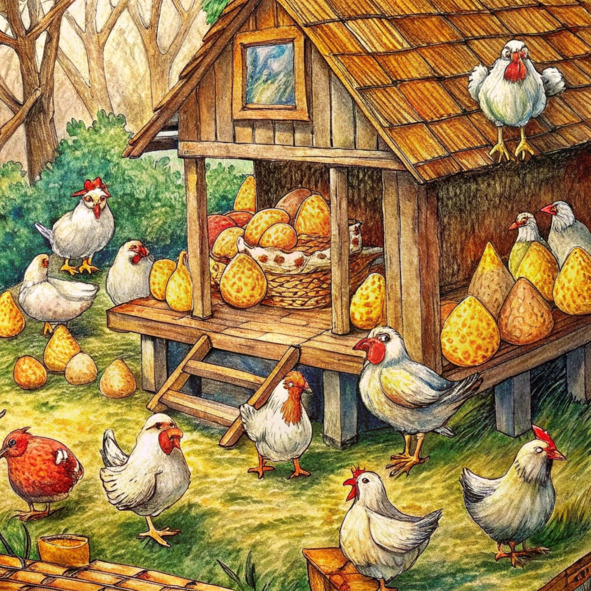 – Кряк-кряк, яйца нужно собрать, – проворковала одна из куриц, слегка пошевеливая своим покрытым перьями телом.