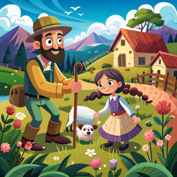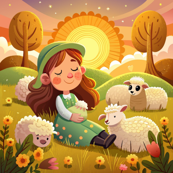 Когда солнце достигло своего пика в небе, заливая теплым сиянием тихую ферму, Ирен отправилась со своим стадом овец на ежедневный выпас. Перед ними простирались холмы, обещая бесконечные поля с сочной травой и чистое голубое небо.
