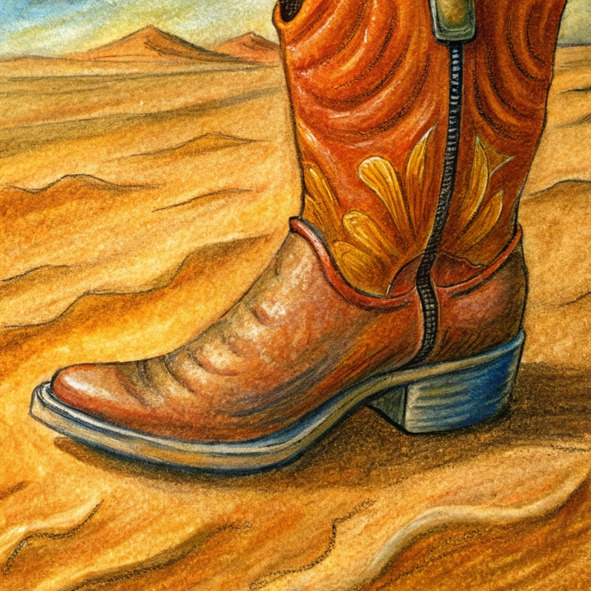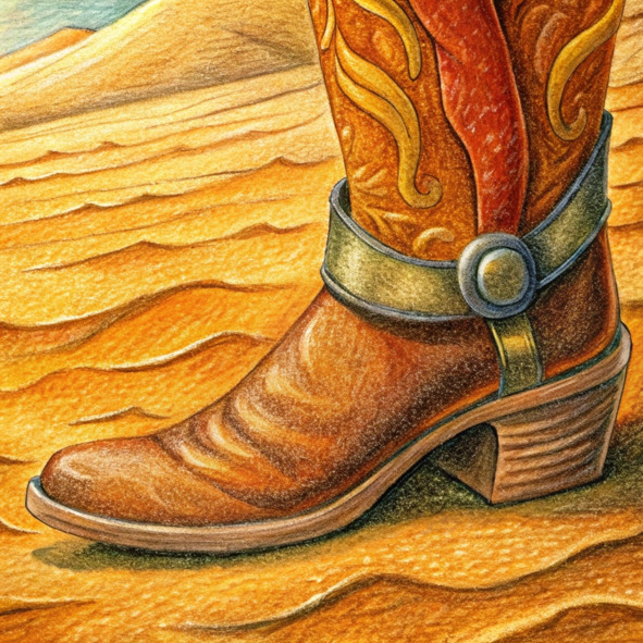 Она осторожно выглянула. Ковбой давно исчез, только пылинка вдалеке. Одинокий ботинок лежал на песке, неподвижный и безмолвный, свидетельствуя о поспешном путешествии ковбоя.