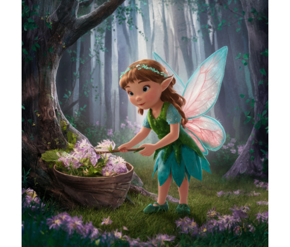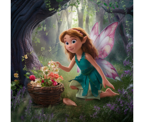 В самом сердце пышного и зеленого леса жила юная фея по имени Мелани. С изящными крыльями, мерцающими в пятнах солнечного света, Мелани грациозно порхала среди деревьев, ее смех звенел, как нежный перезвон колокольчика.