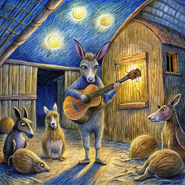 Слухи о ночных мелодиях Хосе начали распространяться среди сельскохозяйственных животных. Один за другим, привлеченные чарующими звуками, они собирались возле сарая. Старый петух Гораций примостился на столбе забора, его яркий гребень покачивался в такт музыке. Группа кур тихо кудахтала, одобрительно кивая головами. Овцы удовлетворенно мычали, их шерсть отливала серебром в лунном свете.
