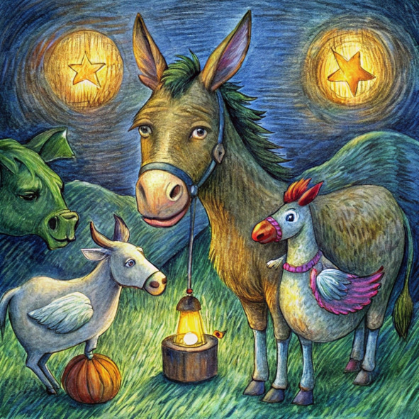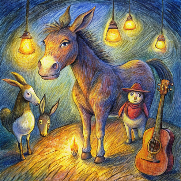 Под покровом темноты и звезд Хосе чувствовал, как ритм ночи течет сквозь него. Его тайная практика больше не была просто хобби, это была связь, которая привязывала его к животным, к ферме и к лунной ночи. Хосе больше не был просто ослом на ферме. Он был музыкантом, рассказчиком историй и источником волшебных звуков, которые эхом разносились по тихой ночи.