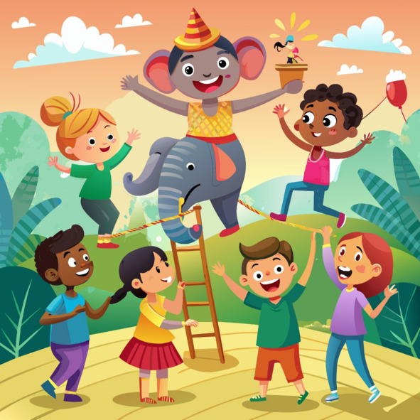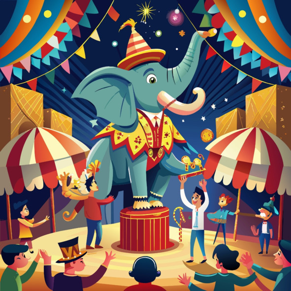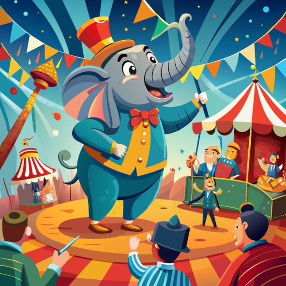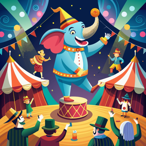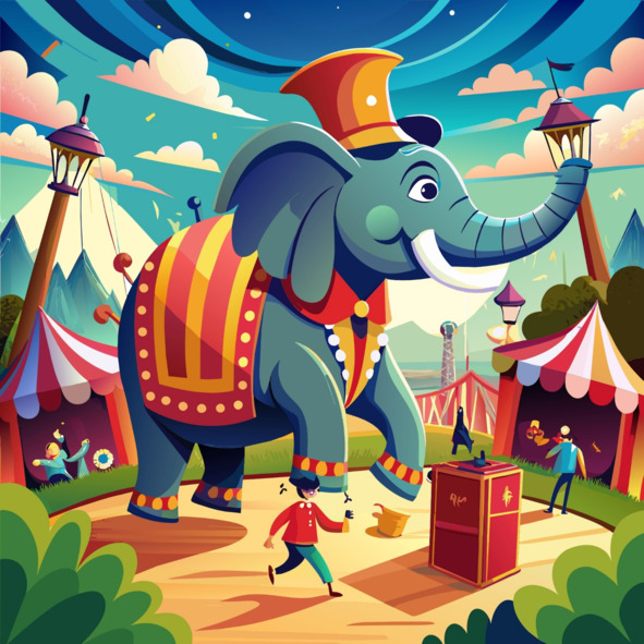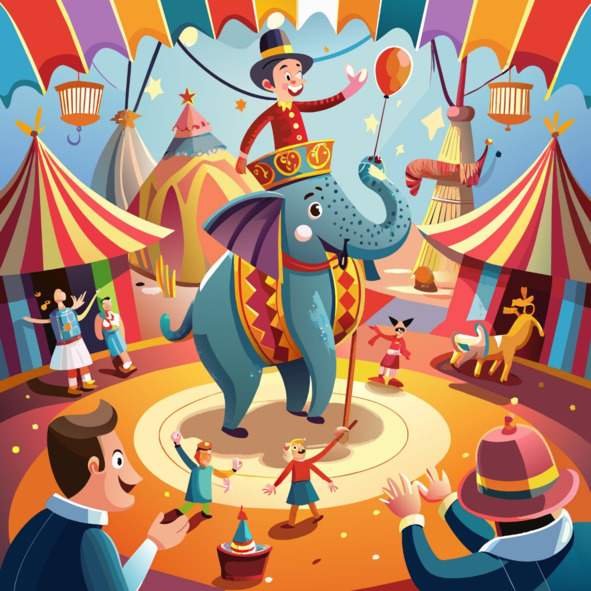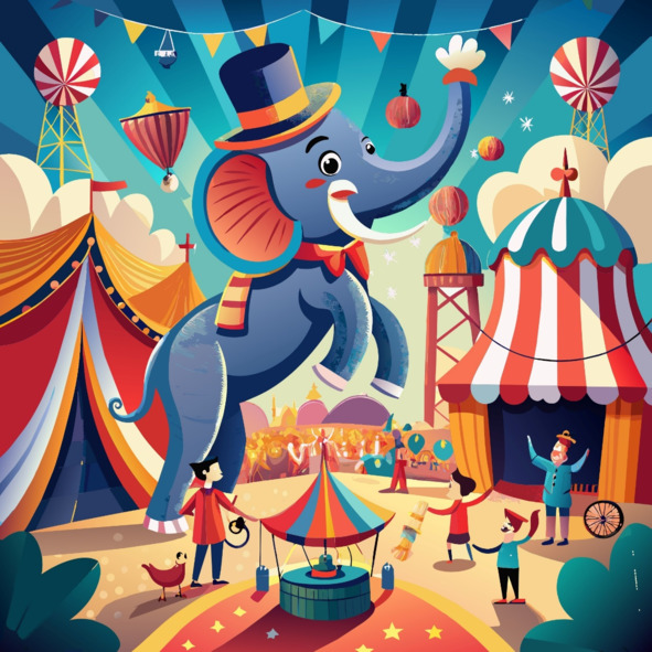 С торжествующим звуком трубы веселый слон Хавьер вступил на шумную территорию цирка, его сердце было переполнено волнением и предвкушением. Воздух был наполнен звуками смеха и музыки, а яркие цвета цирковых шатров танцевали в солнечном свете.