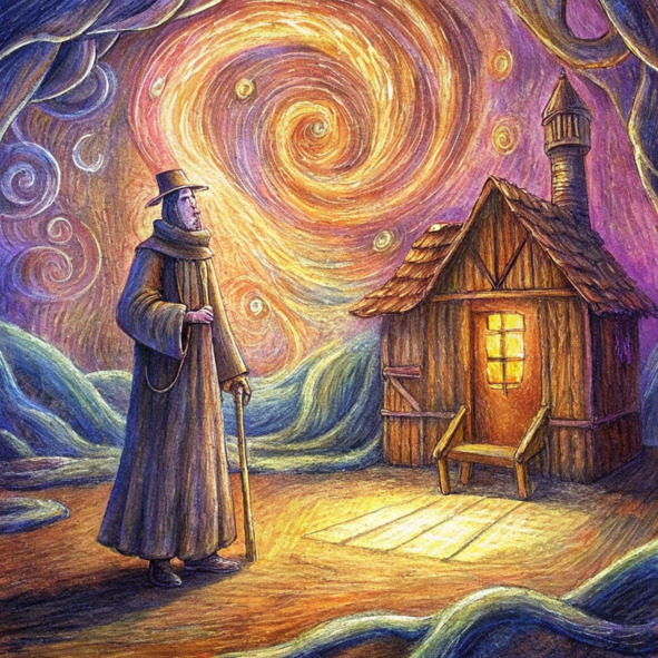 Наконец он вышел из чащи леса и увидел маленький, поросший мхом коттедж, залитый мягким светом. Из кривой трубы поднимался дым, серая струйка на фоне ярко-голубого неба. Вот он, дом Оуэна, место, о котором шептались легенды.