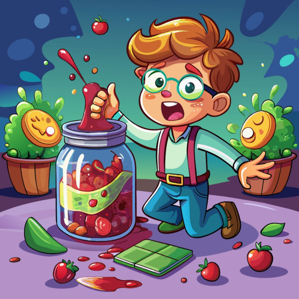 К своему удивлению, он обнаружил открытую банку джема с перекошенной крышкой и несколькими липкими каплями, стекающими по стенкам. Нос Лео дернулся от сладкого аромата клубники, доносившегося из банки.