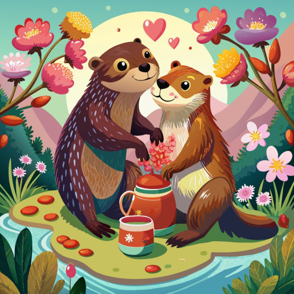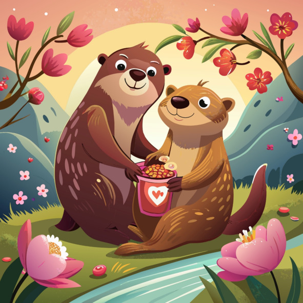 Ярким и солнечным утром в День Святого Валентина Лео, жизнерадостный выдр, с нетерпением отправился на свою ежедневную прогулку по маленькому городку, приютившемуся на берегу сверкающего пляжа. Соленый ветерок взъерошил шерсть Лео, когда он прогуливался по песчаной тропинке, его усы подергивались от возбуждения.