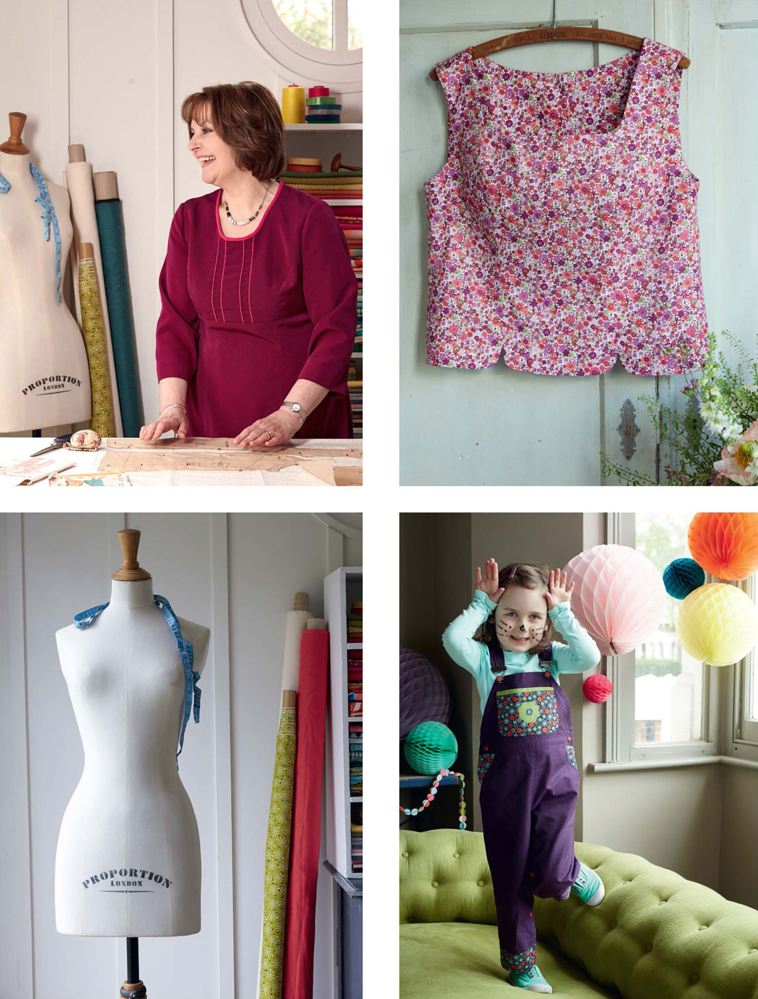In the second part of the book, I’ve presented a range of projects to suit varying degrees of skill and ability – beginner, intermediate and more advanced. The skill level is shown at the start of each project. Beginner projects only require straight seams and simple hand stitching; intermediate projects involve curved seams, bound edges and relatively easy fastenings such as drawstrings or centred zips; the more advanced feature facings, interlinings, and matching fabric patterns and may involve assembling several different components. With these I’ve tried to give a taste of every type of sewing project you might be tempted to try, from craft work – how to make your own bunting or a beautiful puppet theatre, complete with puppets – to home furnishings, from a Roman blind to a boxed cushion cover. There are a number of dressmaking projects too, a range of items for both adults and children. These are linked to actual patterns that you can buy – and which you will need for the pattern pieces and full assembly instructions – but you don’t have to be restricted to these. My aim has been to try to bring them alive by focusing on particular techniques – such as how to insert an invisible zip or make a smocked panel for a little girl’s dress – which you can add to your repertoire and use again and again in other projects, building your skills all the time.