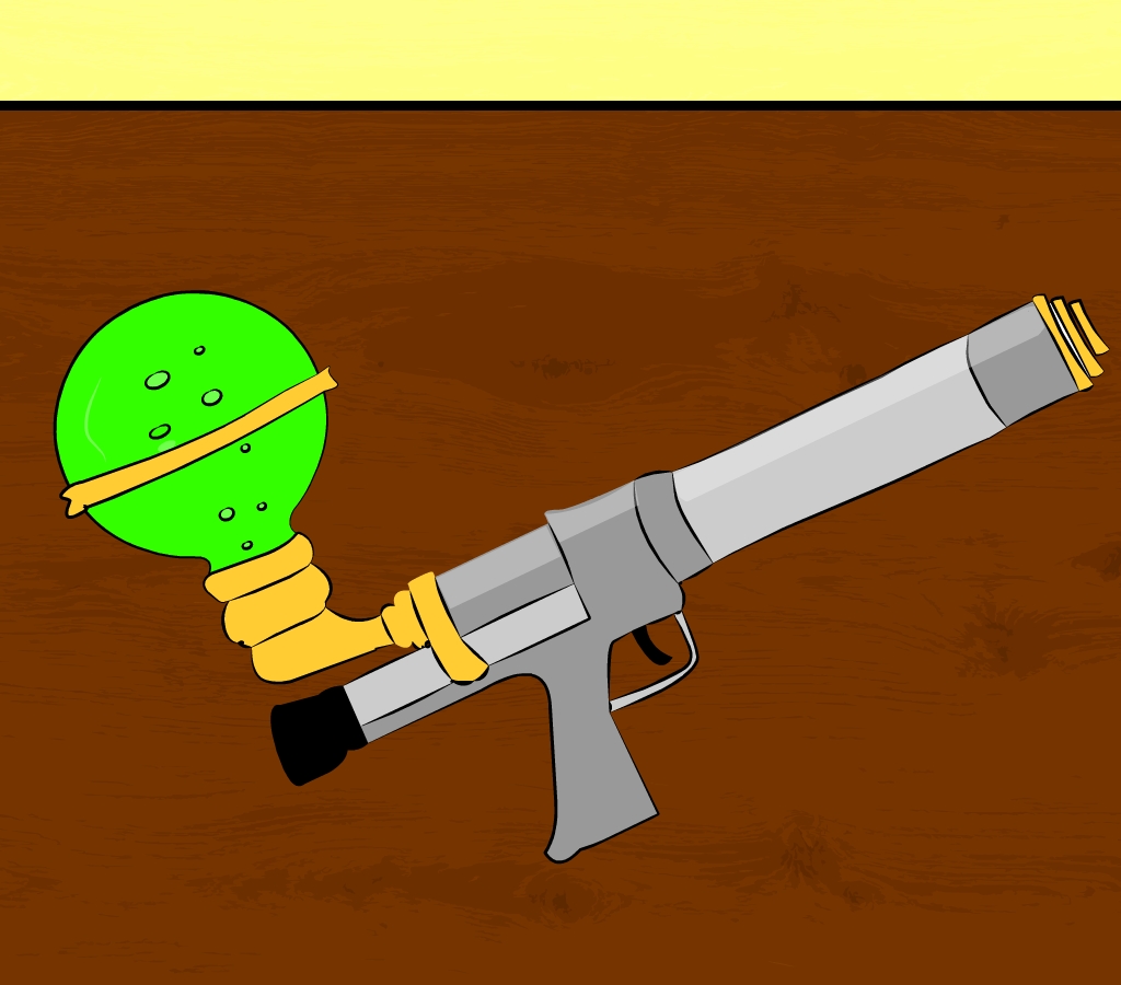 – Это моё изобретение – Клеемёт! – хвасталась она – он выстреливает сгустком очень прочного клея, который моментально затвердевает на полчаса. Возьмите его и попробуйте взобраться с его помощью по стене. Просто стрельните на стену и прикрепите к пятну кирпич или палку, на которую можно встать и таким образом сделаете лестницу.