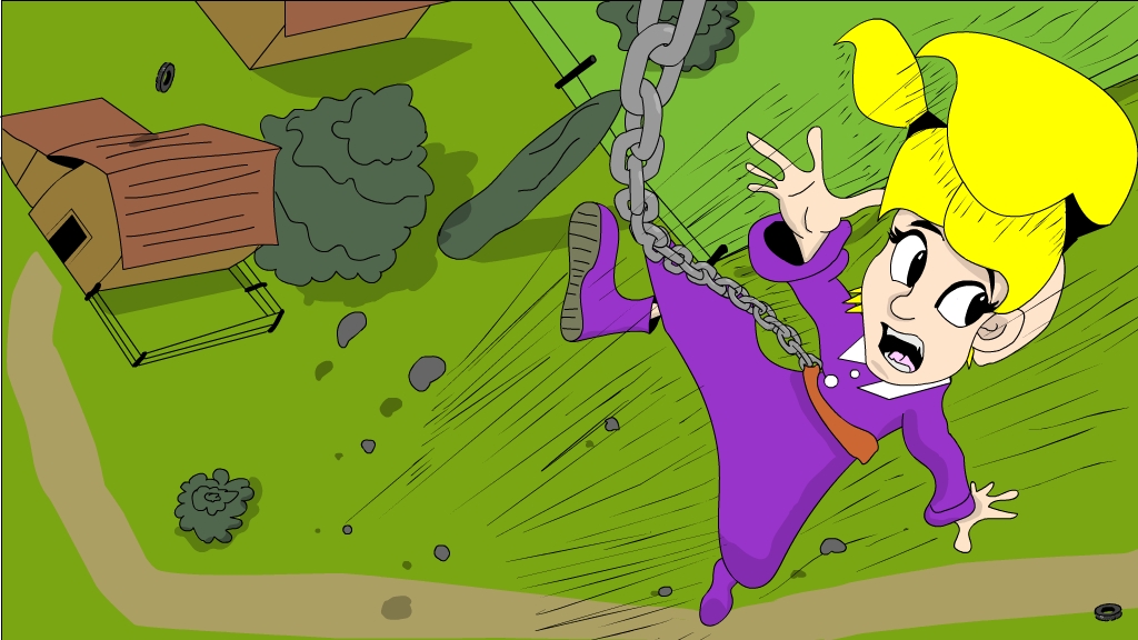 «Хоть бы веревки хватило дотянуться до кнопки включения» – думал Ник. Он практически подлетел к роботу, но веревка закончилась.
