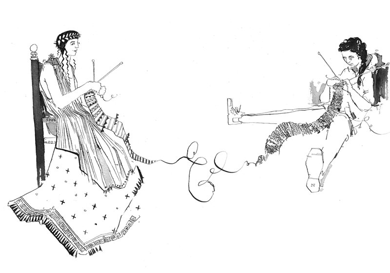 Я и ткать научилась, как Пенелопа, – то есть не по-настоящему ткать, конечно, а вязать. Я вязала шарф и, как Пенелопа, перед самым концом работы распускала его и начинала заново. Каждый раз у меня получалось лучше и лучше. Шарф был частично синий в честь Греции и частично жёлтый в честь Австралии. Год шёл за годом, я вязала и распускала, вязала и распускала и мало-помалу прониклась восхищением к Пенелопе не меньше, чем к Одиссею. Одиссея я любила, как любят героев, – он очень отважный, это да, но любить его или восторгаться им иногда нелегко. Потому что, по-моему, он чересчур самодовольный, не особенно честный и благонадёжный, а иногда так и попросту жестокий.