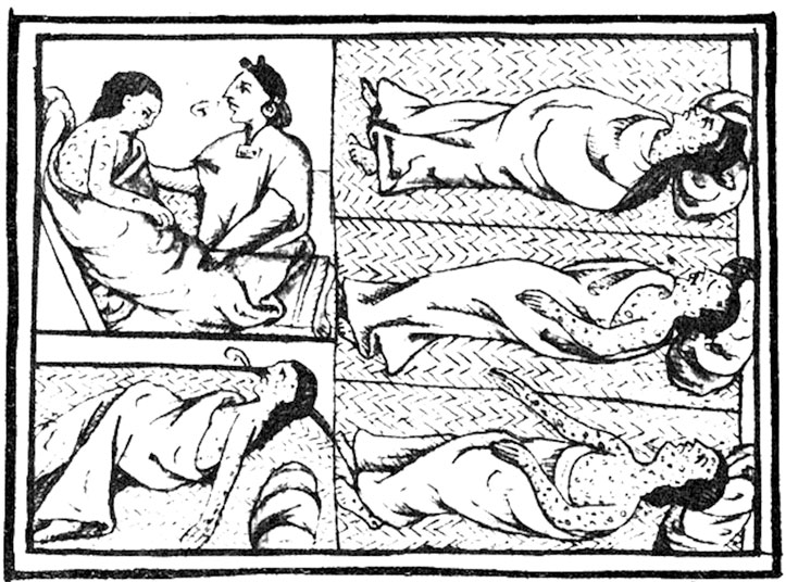 После смерти Монтесумы его преемник на мексиканском императорском троне собрал армию ацтеков и повел их в ночную атаку на город, чтобы выбить из него конкистадоров. Но в ту же ночь до Теночтитлана добралась и оспа. Один за другим умерли от нее император Мексики, многие члены его семьи и подданные, а также солдаты его армии[10]. По мере того, как область за областью оказывалась во власти инфекции, улицы многих поселений наполнялись людьми, умирающими от оспы, и умершими, чьи тела не было возможности, да и некому было уносить. В некоторых местах вымерло до половины населения. Правители и люди благородные умирали так же быстро, как крестьяне и рабы11: