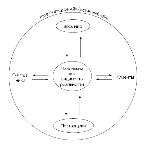 И вот ведь какой интересный нюанс: мы только что снова от двухмерной видимой реальности перешли к реальности трехмерной, настоящей! Потому что до сих пор нам казалось, что границы «я» отделяют меня от моих сотрудников, клиентов и поставщиков – и уж тем более от всего мира в целом. Казалось, что я могу забыть об их проблемах и не беспокоиться из-за их успехов и неудач, ведь они не имеют ко мне прямого отношения, они никак не воздействуют на мое благополучие.