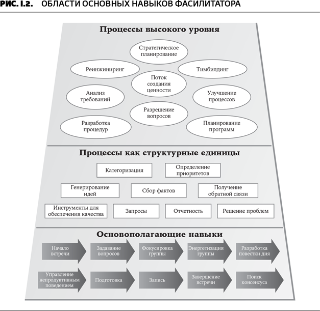 На основе информации, собранной во время этих интервью, мы выявили ряд навыков, которые считаем основными для любого фасилитатора (рис. I.2).