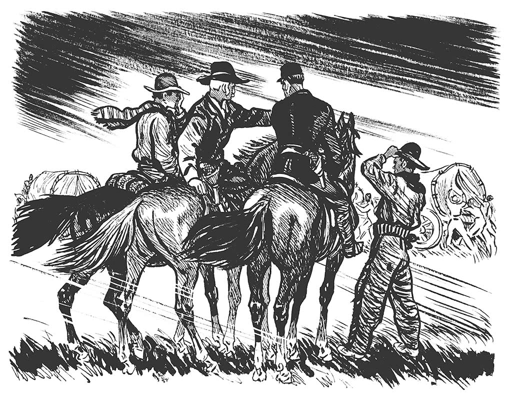 Обернувшись, путники увидели всадника, мчащегося к ним во весь опор.