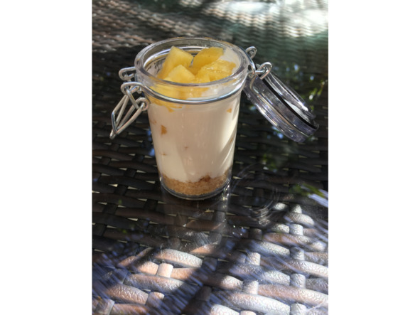 Выкладываем основу в десертный стаканчик, сверху добавляем сливочный наполнитель. Украшаем кусочками свежего ананаса.