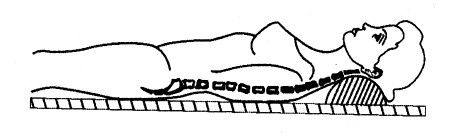 Кровать, на которой вы спите, должна быть настолько ровной и твердой, насколько это для вас терпимо. Одеяло должно быть таким легким, чтобы только не замерзнуть. На постели старайтесь лежать ровно. Когда тело лежит таким образом, вес его равномерно распределяется, мускулы максимально расслабляются, а подвывих или искривление позвоночника, вызванные вертикальным положением в течение дня, легко исправляются (рис. 1).