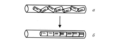 Рис. 4. Подвывихи позвонков на мягкой постели (а) и положение позвонков на твердой постели (б)