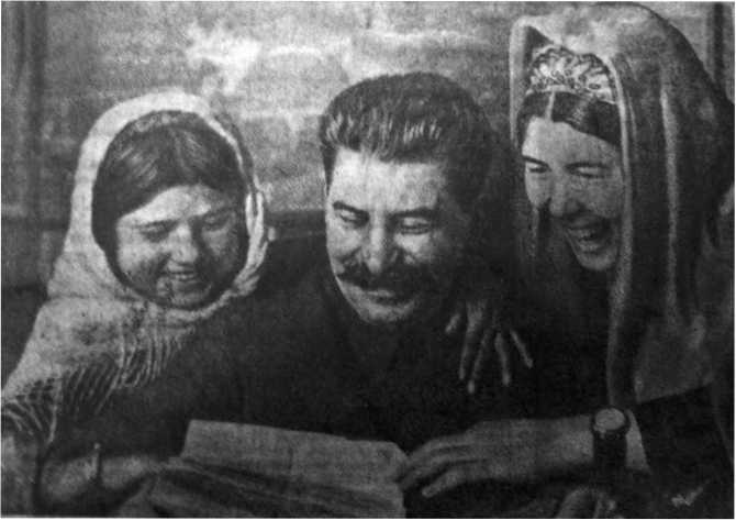 И.В. Сталин подписывает свою фотографию Мамлакат на память. Справа – Э.Гельдыева, (председатель Фарабского райисполкома, Член ЦИК Туркменской ССР). 1935 г.