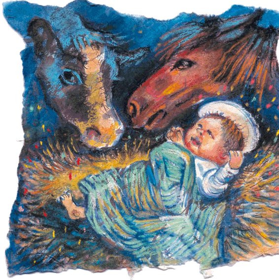 Мария родила маленького Мальчика. Она спеленала Его и положила в ясли, как в кроватку.