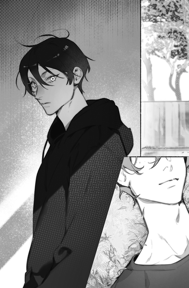 Переодевшись в мешковатые хлопковые штаны и черную толстовку, он бодро спустился по ступенькам и выскочил на задний двор, где на скамейке под козырьком общежития ждал Эймери. Выражение его лица соответствовало надвигающейся непогоде: такое же мрачное и холодное. Азаруэль даже сказал бы «безучастное».