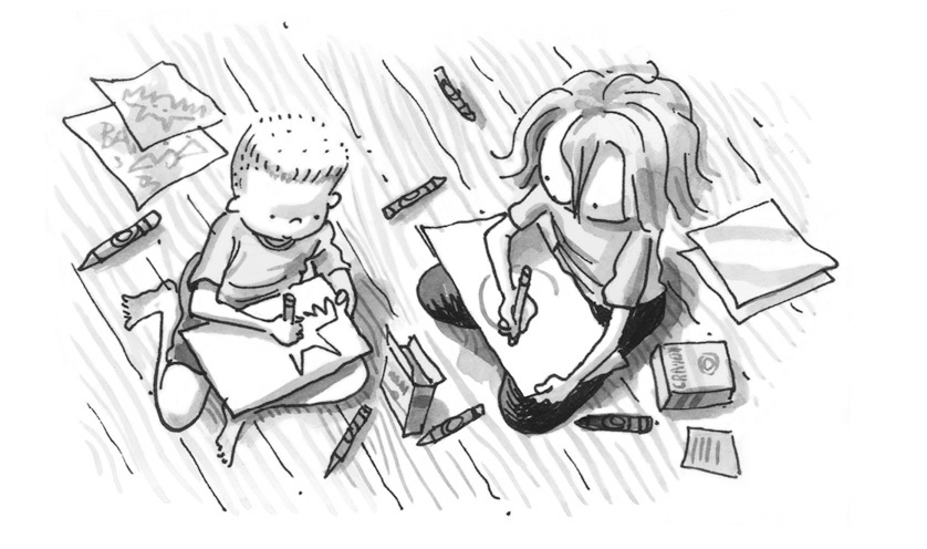 Джуди высыпала на пол все фломастеры, мелки, цветные карандаши и пастели, что у неё были. Стинк схватил первый попавшийся синий фломастер и начал рисовать.