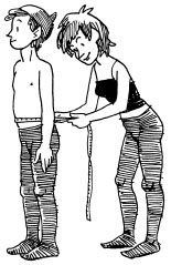 Some people haven’t stepped on a scale since Laverne & Shirley played prime time. And that’s a good thing. For our purposes, you don’t need to know how much you weigh (but if you want to check your progress on this program, then go ahead and peek). All you need is a tape measure. Measure the circumference of your waist at the point of your belly button, and record the score here. (Depending on how your weight is distributed, you may need to make an adjustment to where you place the tape. If you’re obese, keep the tape measure parallel to the floor during measurement.)
