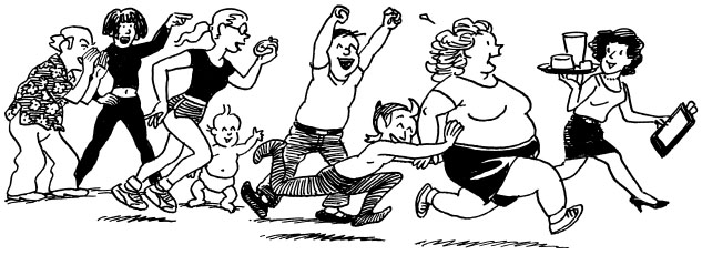 Still, we can’t blame the advent of fast food and waffle cones for all of our weight issues. The downfall started in the pre-GA. (pre-Golden Arches) era—over 10,000 years or so ago, when agriculture first appeared. Agriculture allowed us to make more advances than a seventeen-year-old boy in a movie theater, but we paid a price for them. Besides Myth Buster sparing the lives of countless mammoths, the rise of agriculture ensured that we’d always have a steady supply of food—an advantage during times of famine, a disadvantage at the $6.99 Mama’s Kitchen Eat-Everything Buffet. With a constant source of food, people became less nomadic, and communities grew closer together. While the average life span increased (thanks to the elimination of the extreme sport of tiger chasing, with, perhaps, some help from sanitation and immunization), agriculture also brought its share of downsides: more bacterial infections, shorter stature, and rotting teeth that comes from eating refined sugar and less nutritious farm-raised food (overused soil depletes food of its nutrients). Our ancestors’ diets shifted from vegetables and meat to grains from the farms, essentially hindering them from getting the diverse mix of protein and micronutrients needed for brain development.