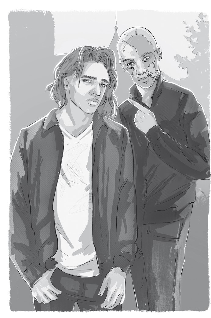 Голова его вся исчерчена швами. Один глаз голубой, другой черный; рот сдвинут, на черепе красоты ради имплантировано несколько волосков. В той части, где мое тело напоминает тыкву, у него что-то вроде гигантской ватной палочки. Что касается кожи – глаза б мои ее не видели. Коричневые, черные, белые и более-менее красные лоскуты образуют органичный узор, нечеткий и аляповатый. Лич однозначно уродлив. Но кто я такой, чтобы судить, с моим-то выдающимся вроде полуострова и снедаемым угрями шнобелем?