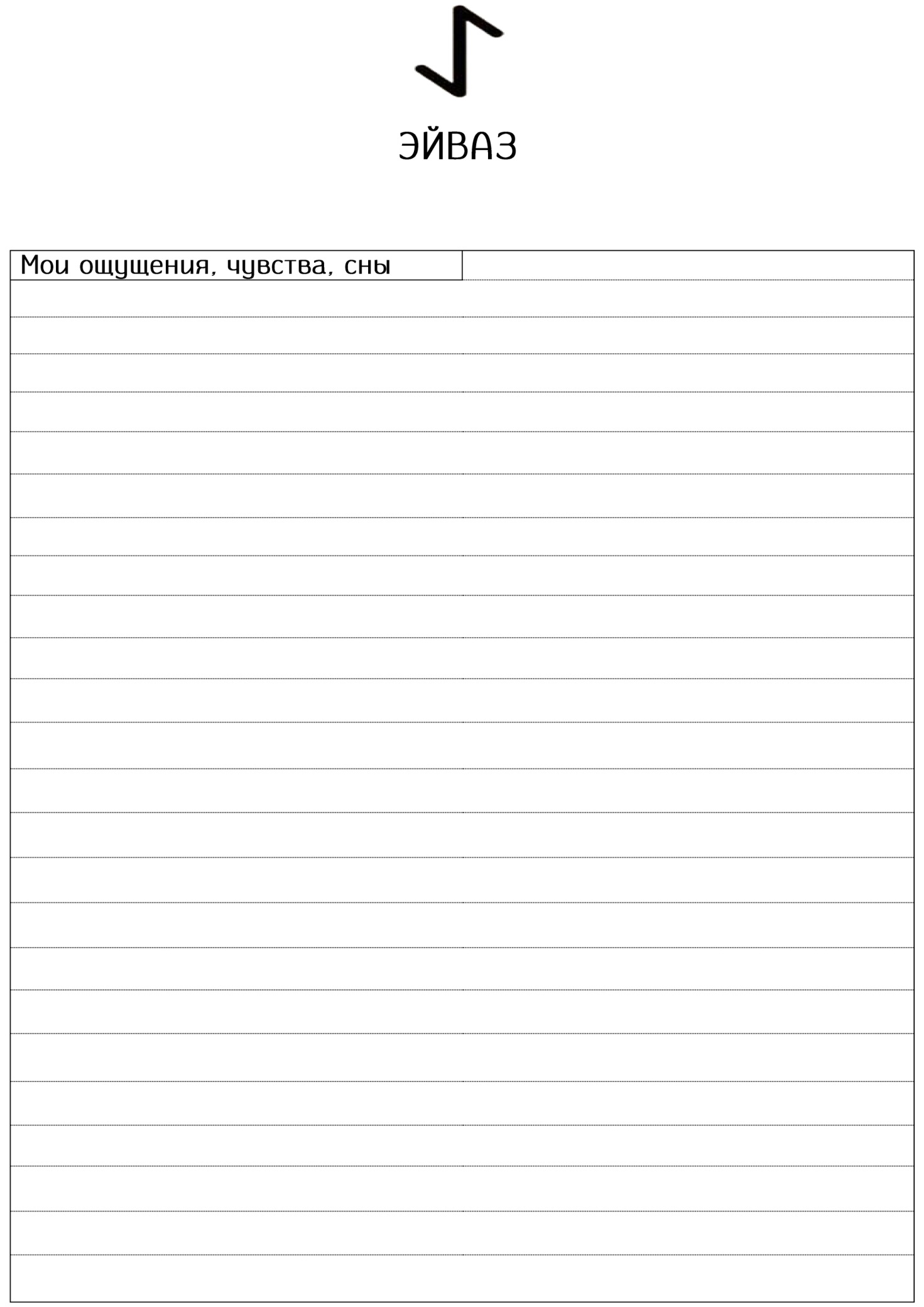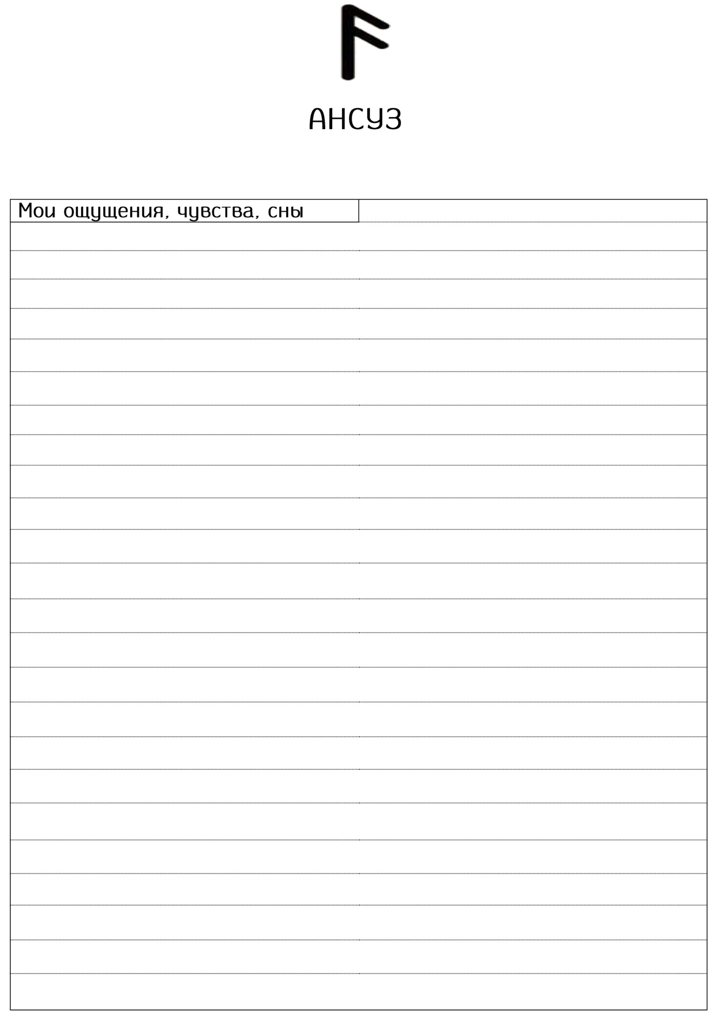 Всё, что вы чувствуете, ощущаете и видите во снах после проживания рун, записывайте в данный дневник. В будущем, когда вы будете возвращаться к своим записям, вы можете увидеть что-то новое. То, что не увидели сразу.