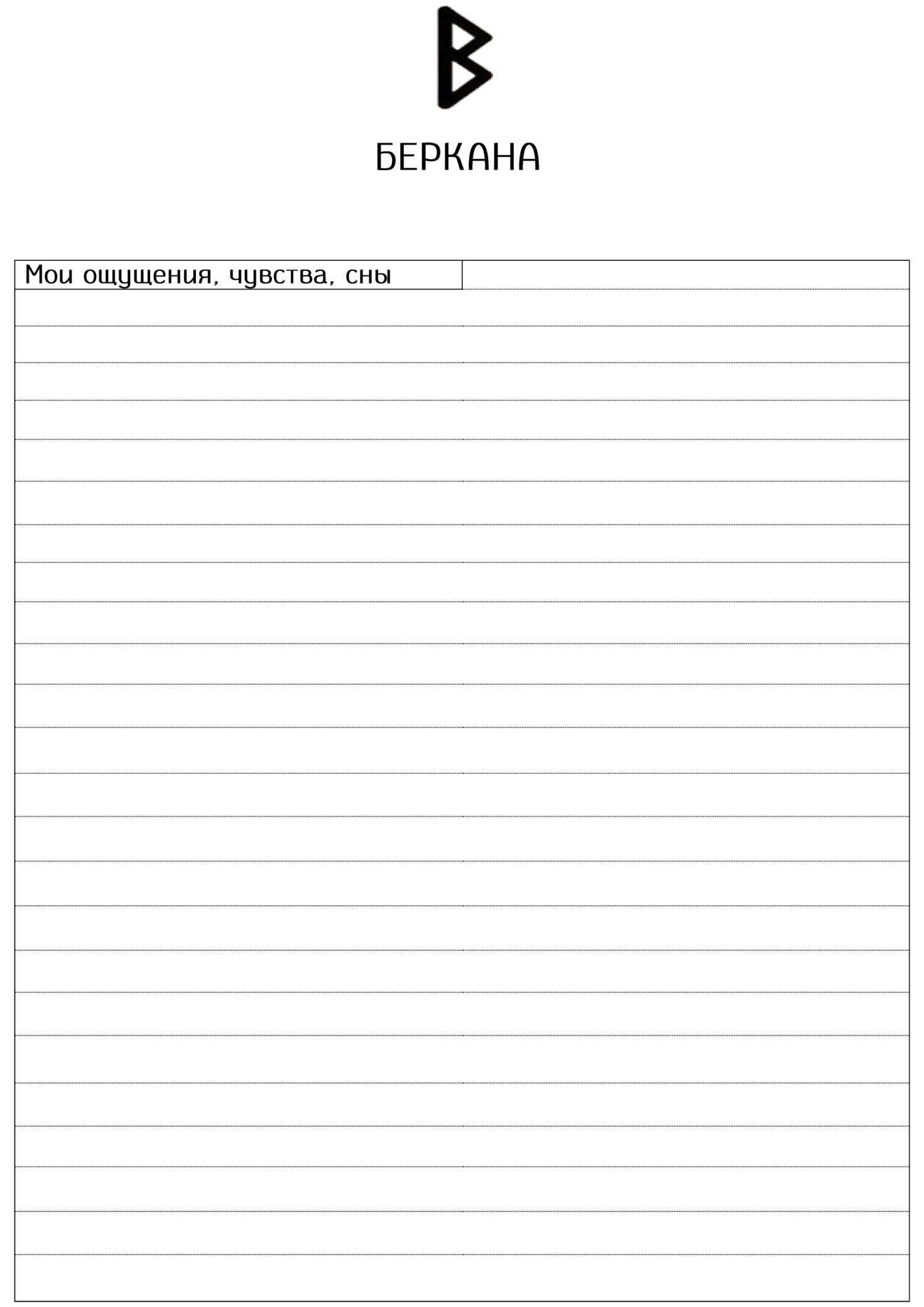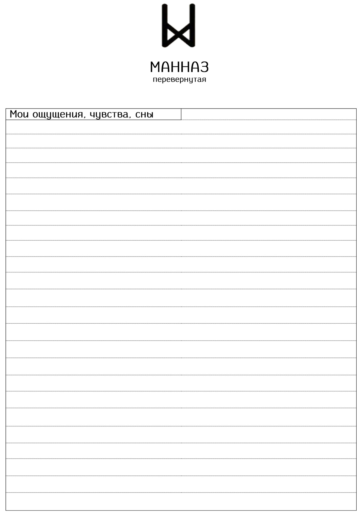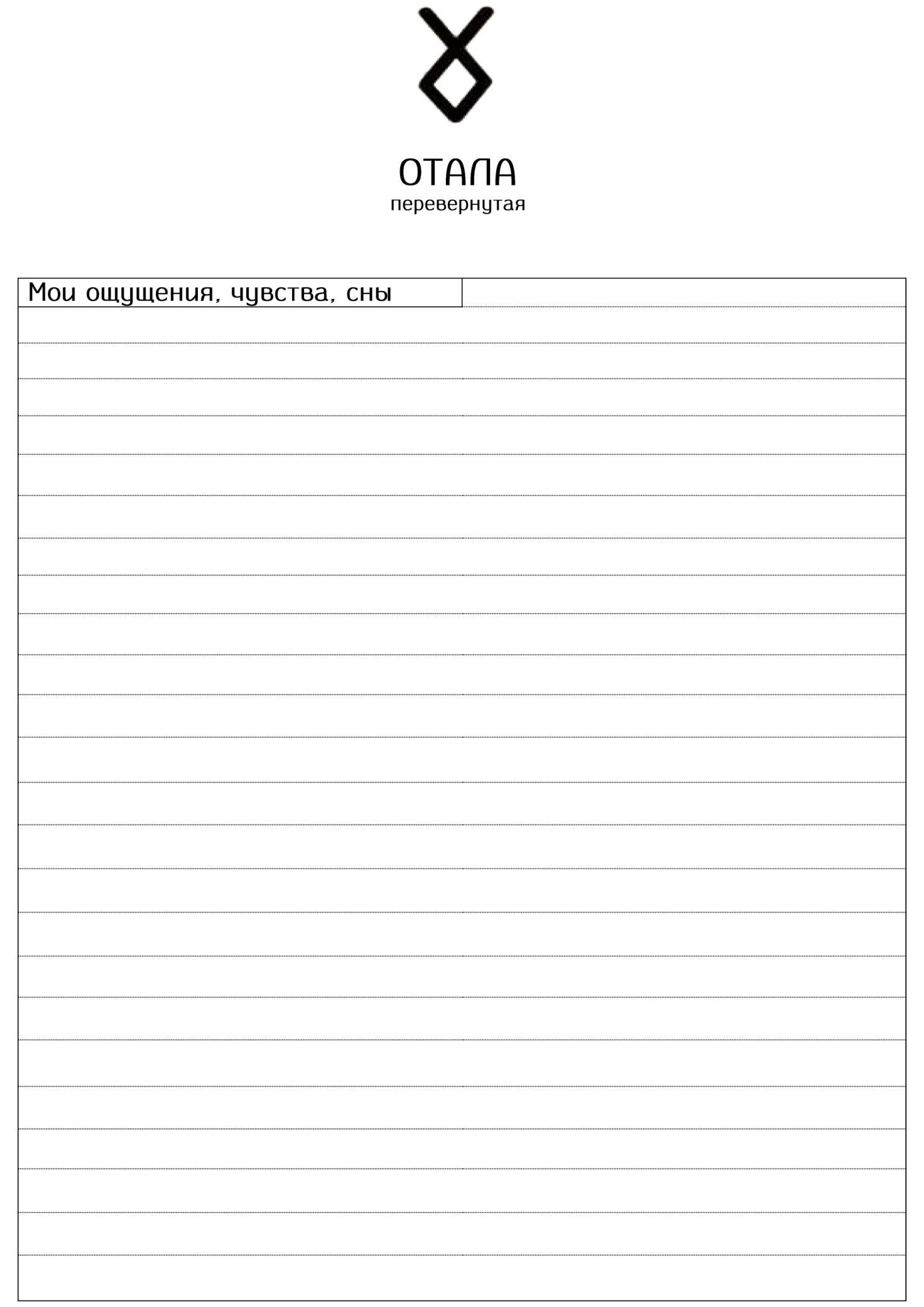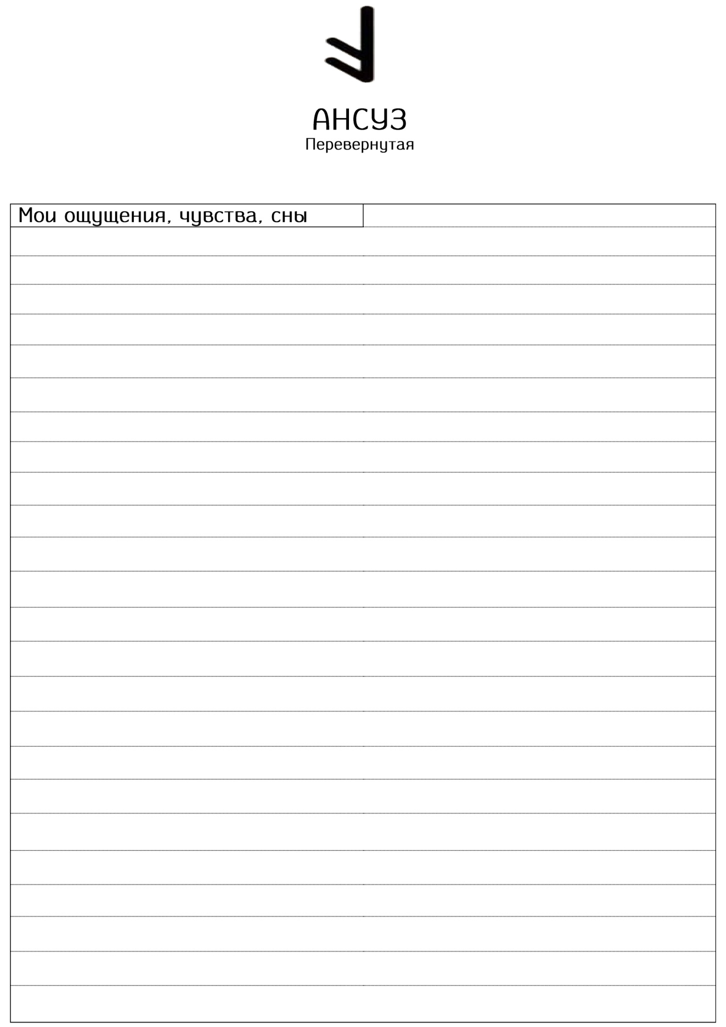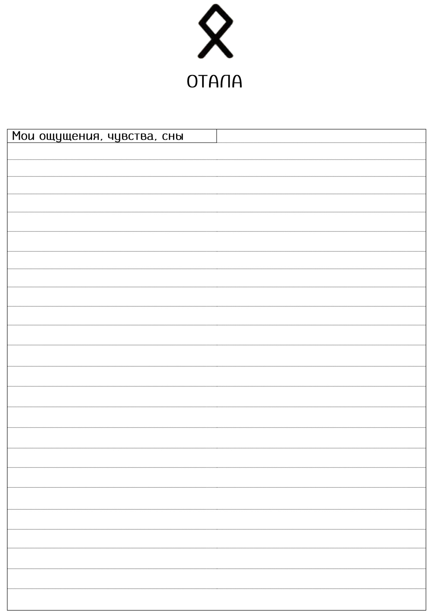 Трактовка Руны – после того, как вы запишите ваши ощущения, чувств, сны, исходя из этих данных, запишите общую трактовку для руны.