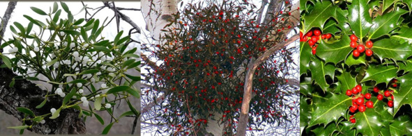 Рис.18, 19 и 20 – Омела белая, омела красная и падуб остролистый