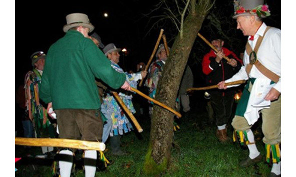 Также они посещали яблоневые сады, чтобы благословить их для хорошего урожая. Процессию фермеров возглавляли король и королева. Они останавливались у самого большого дерева, и королева совершала обряд. Она опрыскивала дерево и его корни приготовленным или смачивали в напитке кусочки хлеба, праздничного пирога и «подпитывали» ими деревья, закапывая в корнях или развешивая на ветках. При этом все громко кричали, стучали горшками, чтобы разбудить дерево и отпугнуть злых духов, а также распевали песни.